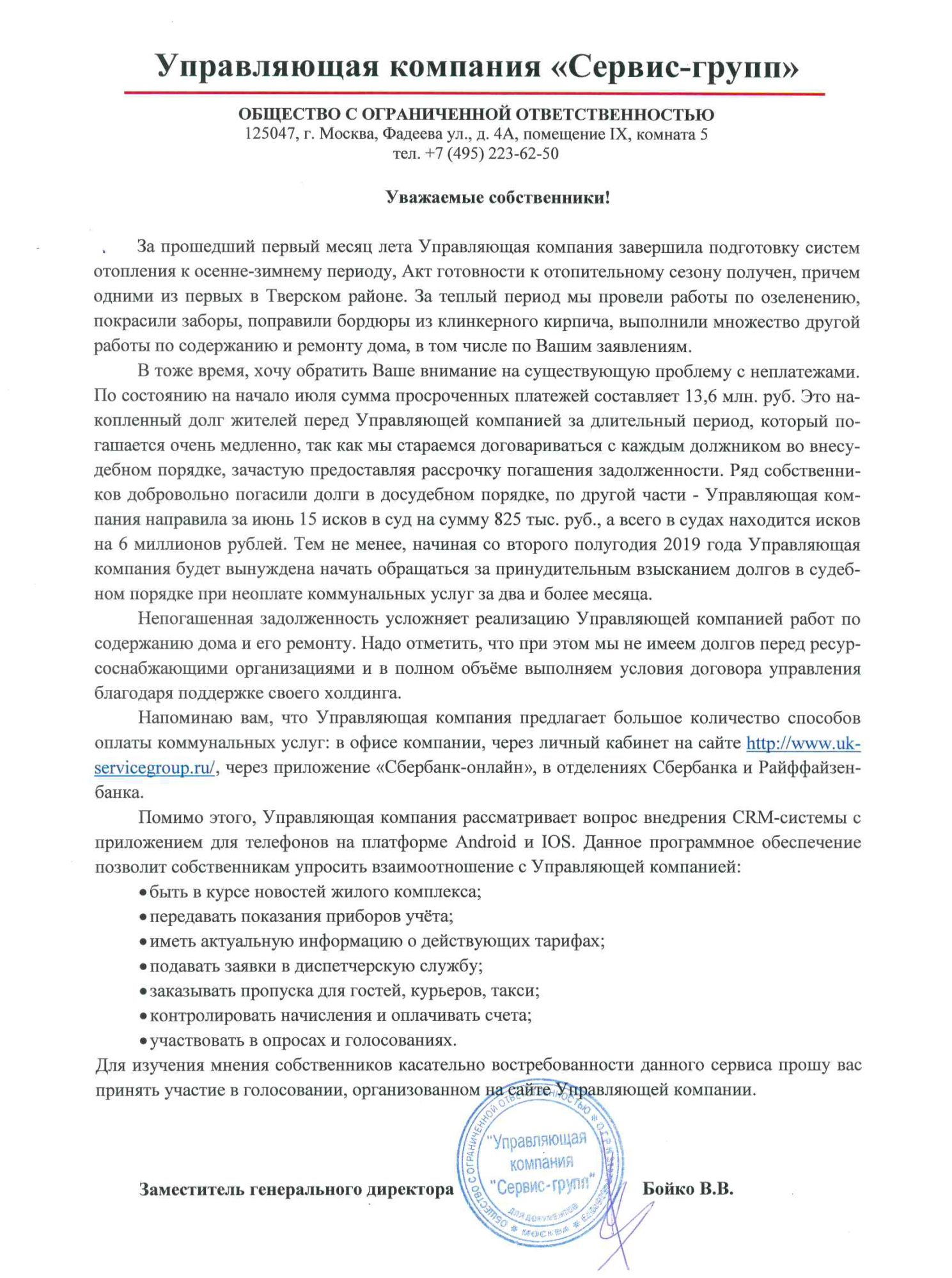 О ситуации с задолженностью собственников